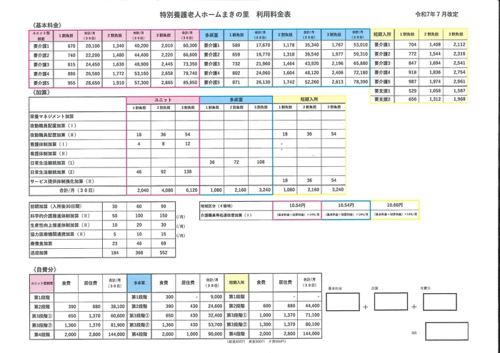 - ※その他実費等は別途請求させていただきます。ご不明な点等ございましたら、支援相談員・事務員にお気軽におたずねください。